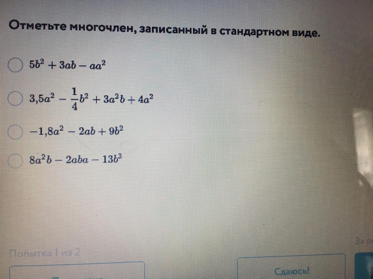 Третий вариант, потому что и а в квадрате и б в квадрате и а*б сокращены до конца. А во втором многочлены ещё можно добавить и будет 7.5 а^2