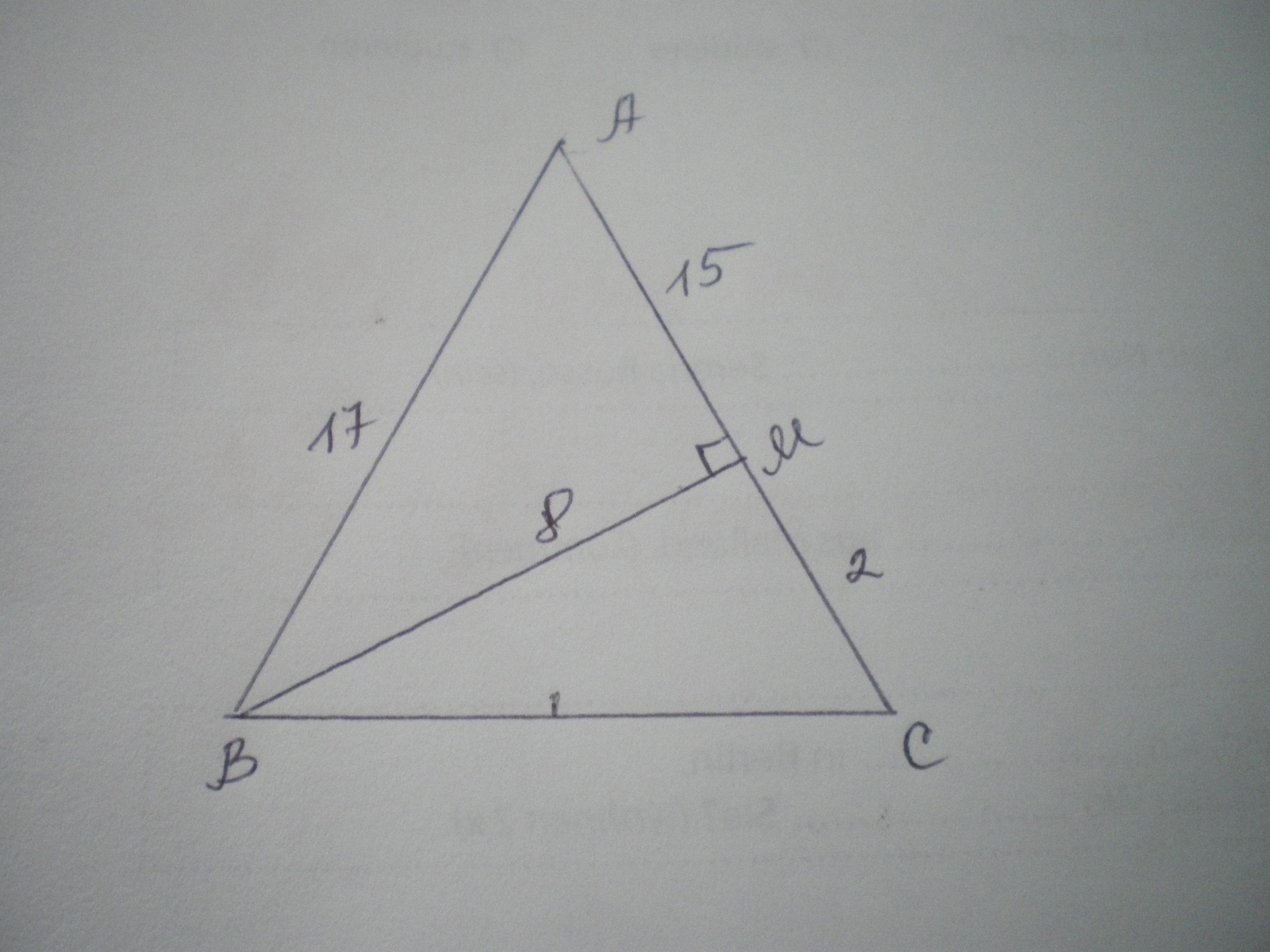Помогите пожалуйста решить задачу. Высота ВМ ровнобедренного треугольника АВС (АВ=АС) делит сторону АС на отрезки АМ=15 см и СМ=2см. Найти основу треугольника АВС.