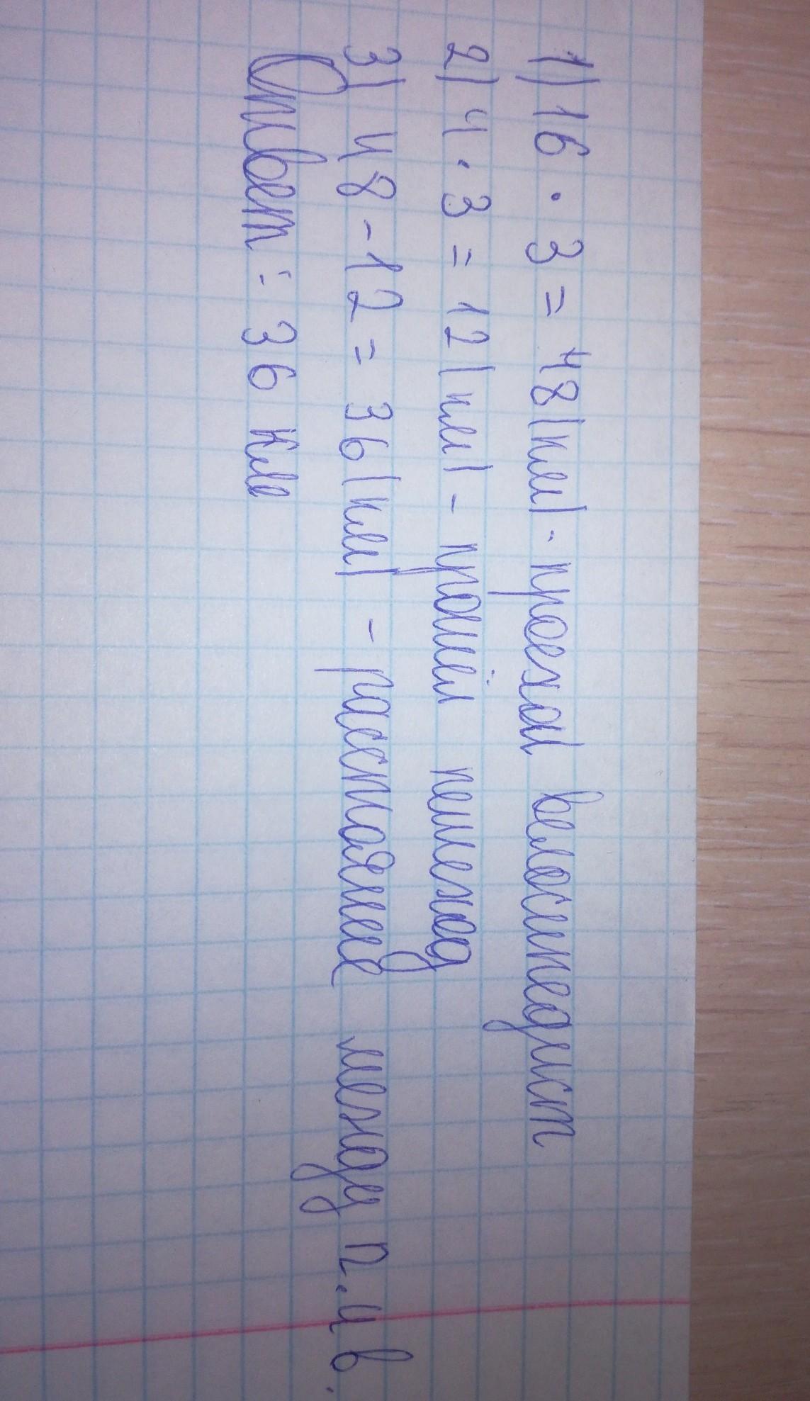 Из посёлка одновременно в противоположных направлениях выехал велосипедист и вышел пешеход. Скорость велосипедиста равна 16 км/ч, а скорость пешехода — 4 км/ч. Каким будет расстояние между ними через 3 часа?