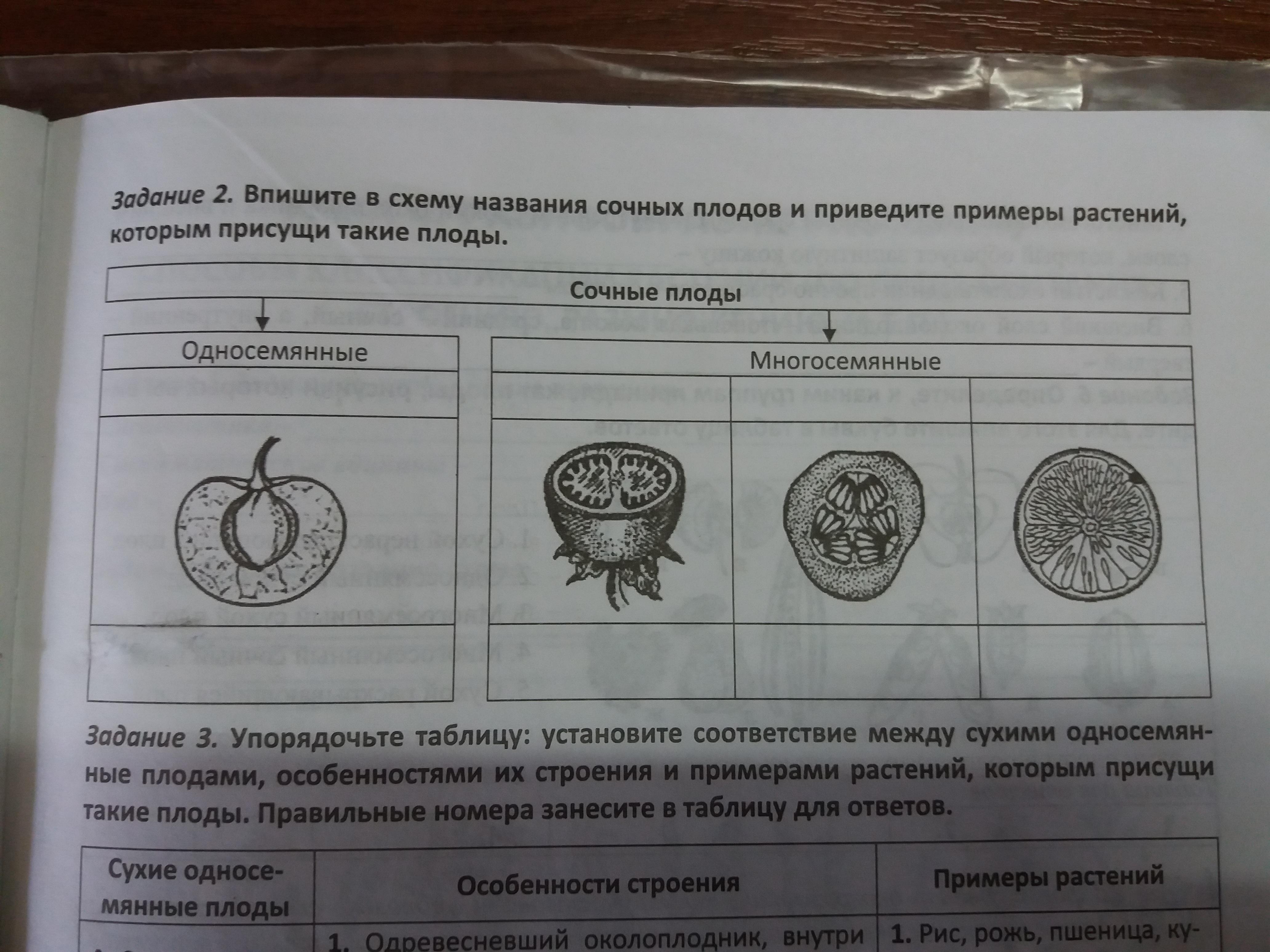 Впишите в схему названия сочных плодов и приведите примеры растений,которым присущи такие плоды
