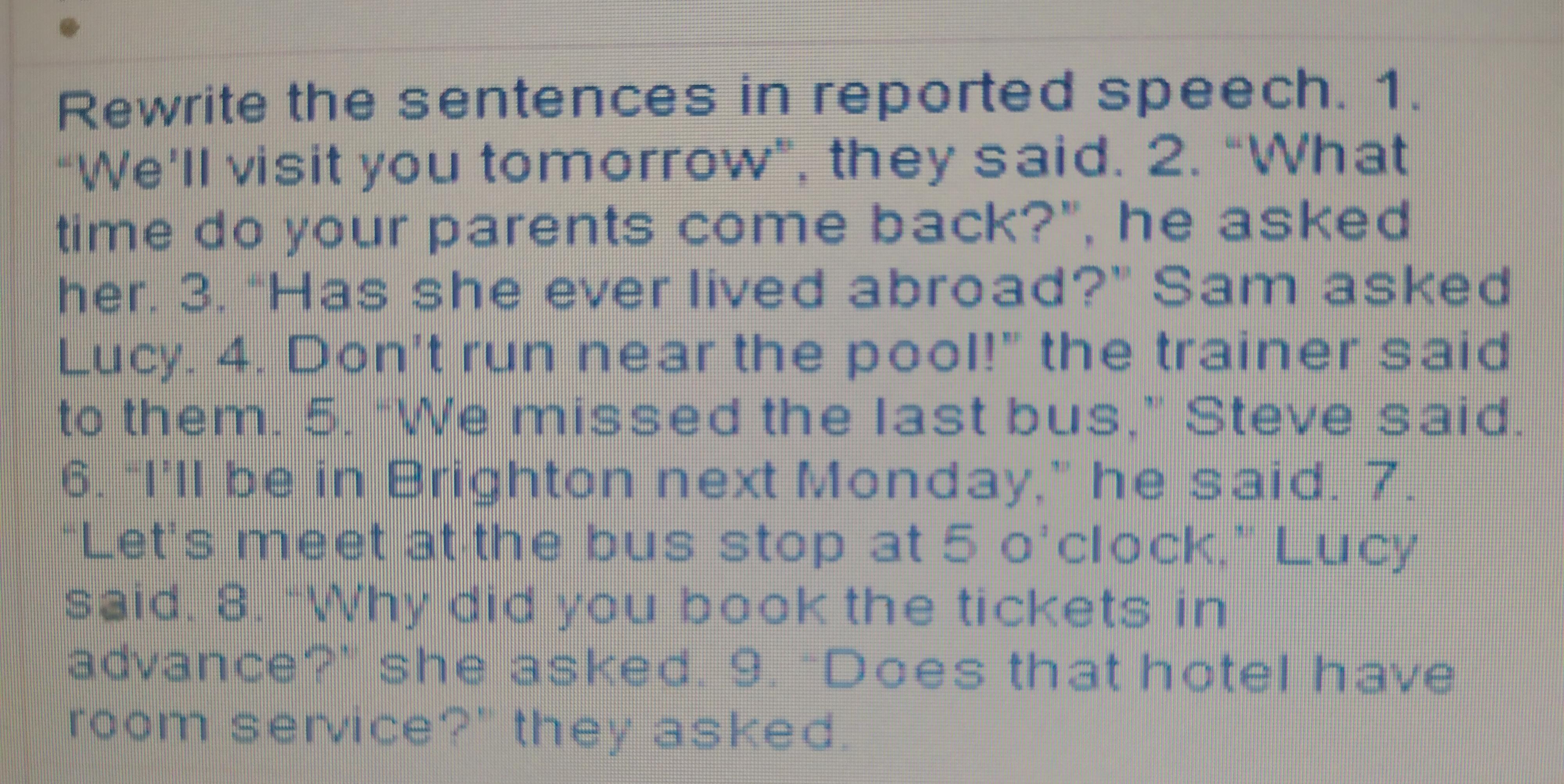 7)Lucy told me to meet her at the bus stop at 5 o'clock