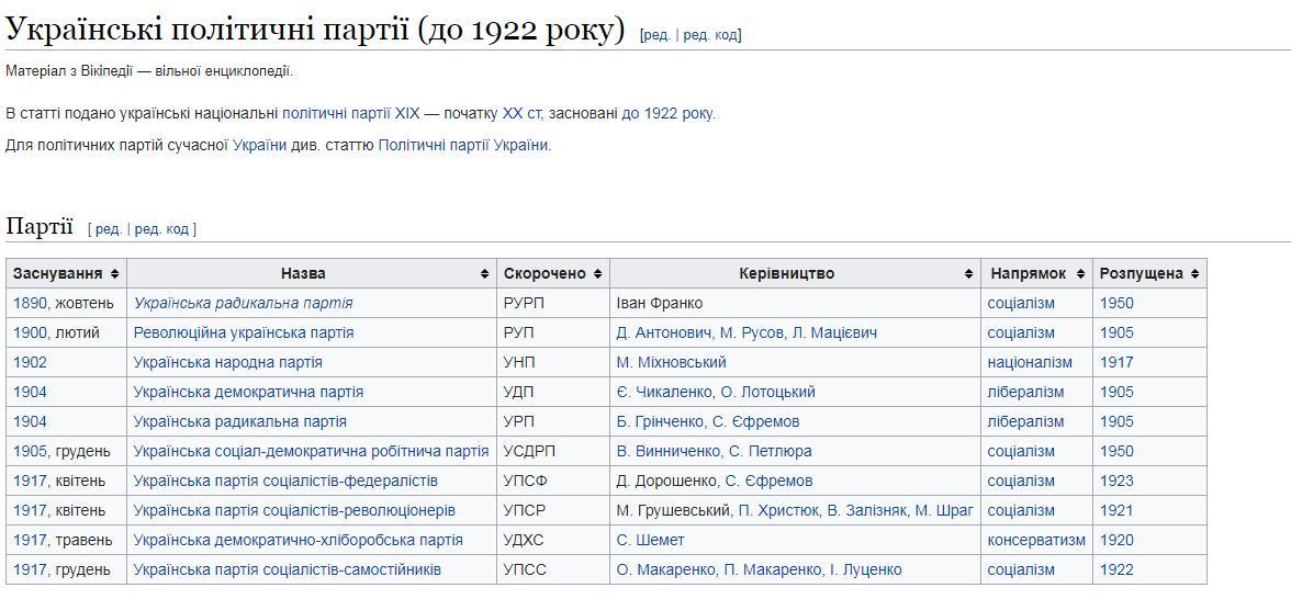 Для політичних партій сучасної України див. статтю Політичні партії України.