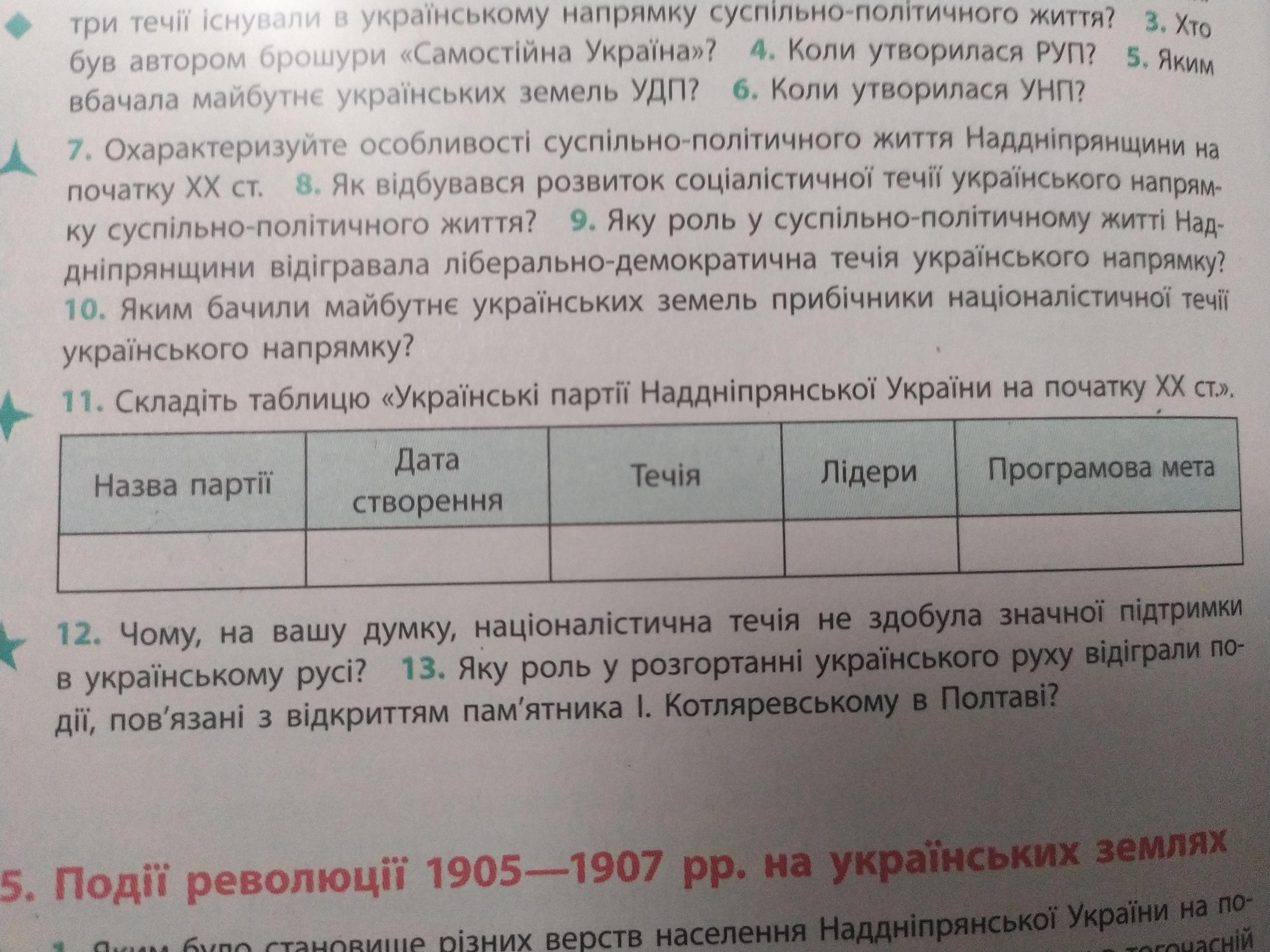Складіть таблицю «Укранські парті Наддніпрянської Украiїни на початку XX ст.
