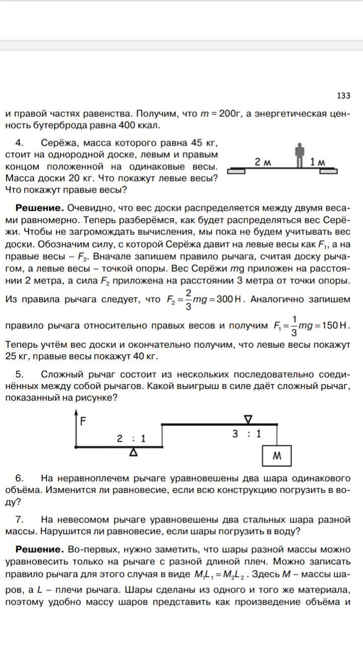 Школьник Серёжа, масса которого равна 45 кг, стоит на однородной доске. Края доски