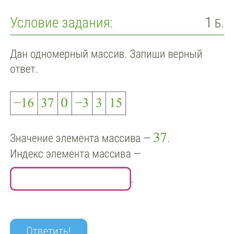 Индекс это можно сказать что номерация ячейок так как в нас 37 в 2 ячейке то идек элемента 37 будет 2