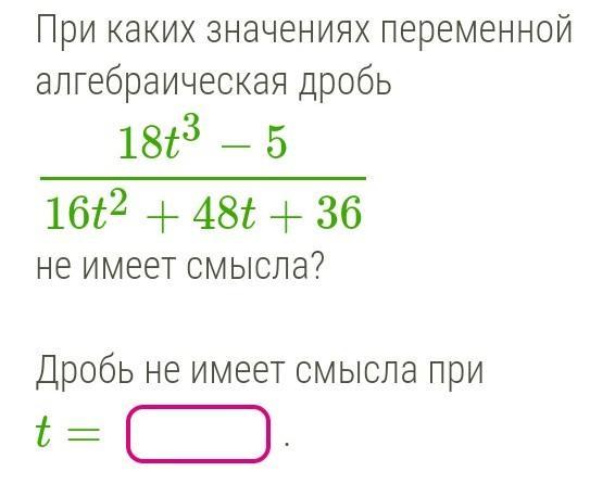 Так как знаменатель дроби не может равняться нулю, то эта алгебраическая дробь не имеет смысла при .