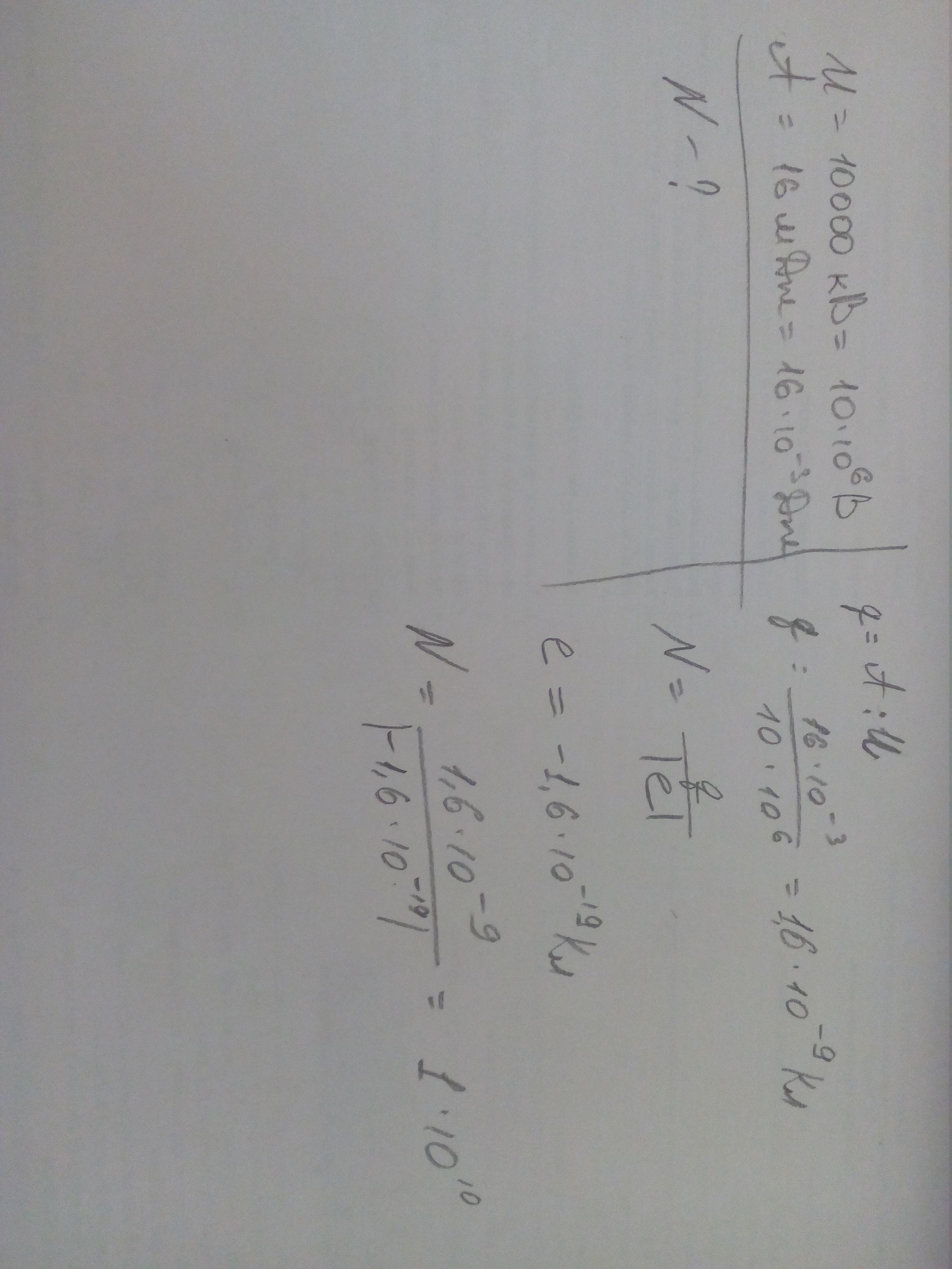Напруга між хмарами під час грози 10000 кВ. Скільки електронів проходить між хмарами, якщо при цьому виконується робота 16мДж?