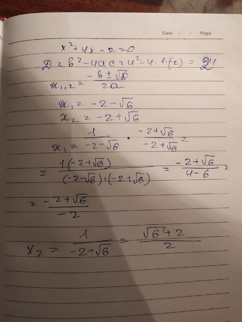 Числа х₁ и х₂ являются корнями уравнения х² + 4х - 2 =0. Найдите значение выражения 1х₁ + 1х₂ . Помогите пж!!! Отмечу ответ как лучший!!!