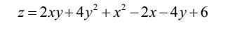 A=d²z/dx²(M)=2; B=d²z/dxdy(M)=2; C=d²z/dy²(M)=8.