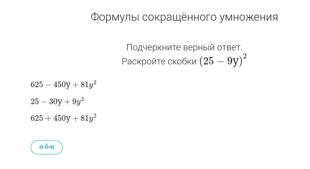 Объяснение:всі інші не можуть бути тому що вони скорочуються по-іншому: 2)(5-3y)^2; 3) (25+9y)^2