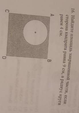 Найдите площадь закрашеной части , если сторона квадрата равна 9см , а радиус круга равен 4 см. Помагите пожалуйста!!!!!!!!!!