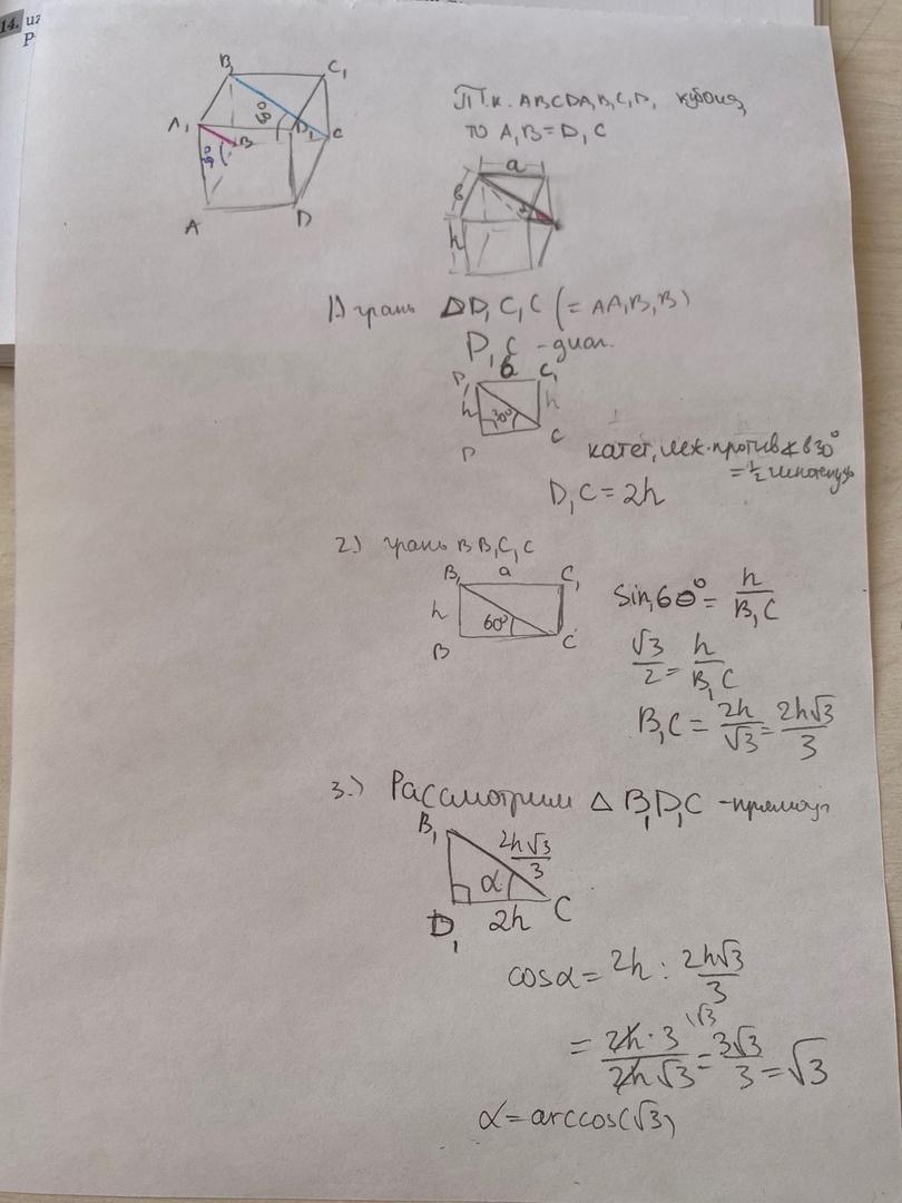 В прямоугольном параллелепипеде АВСDА1В1C1D1 диагонали А1В и В1С его граней наклонены к плоскости основания под углами 30° и 60°. Вычислить угол между этими диагоналями