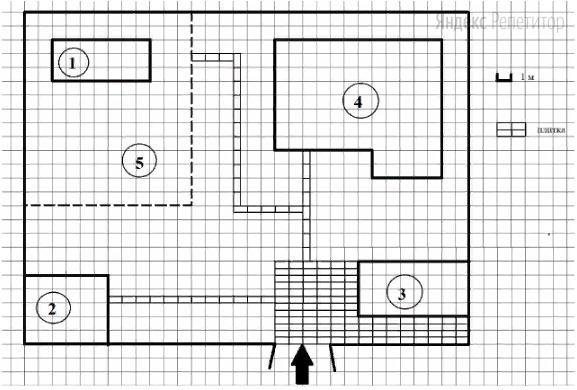 Найдите расстояние от сарая до жилого дома (под расстоянием между двумя объектами следует понимать расстояние между их ближайшими точками).