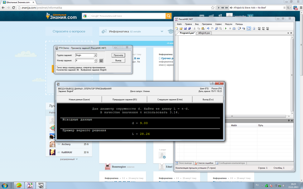 var d,l,pi: real;