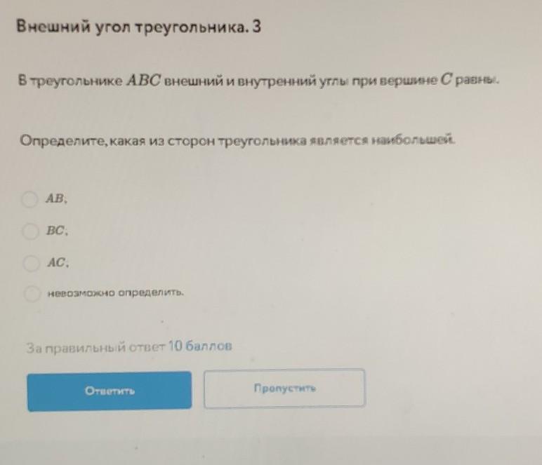 Из этого делаем вывод, что угол C = 90° (прямой).