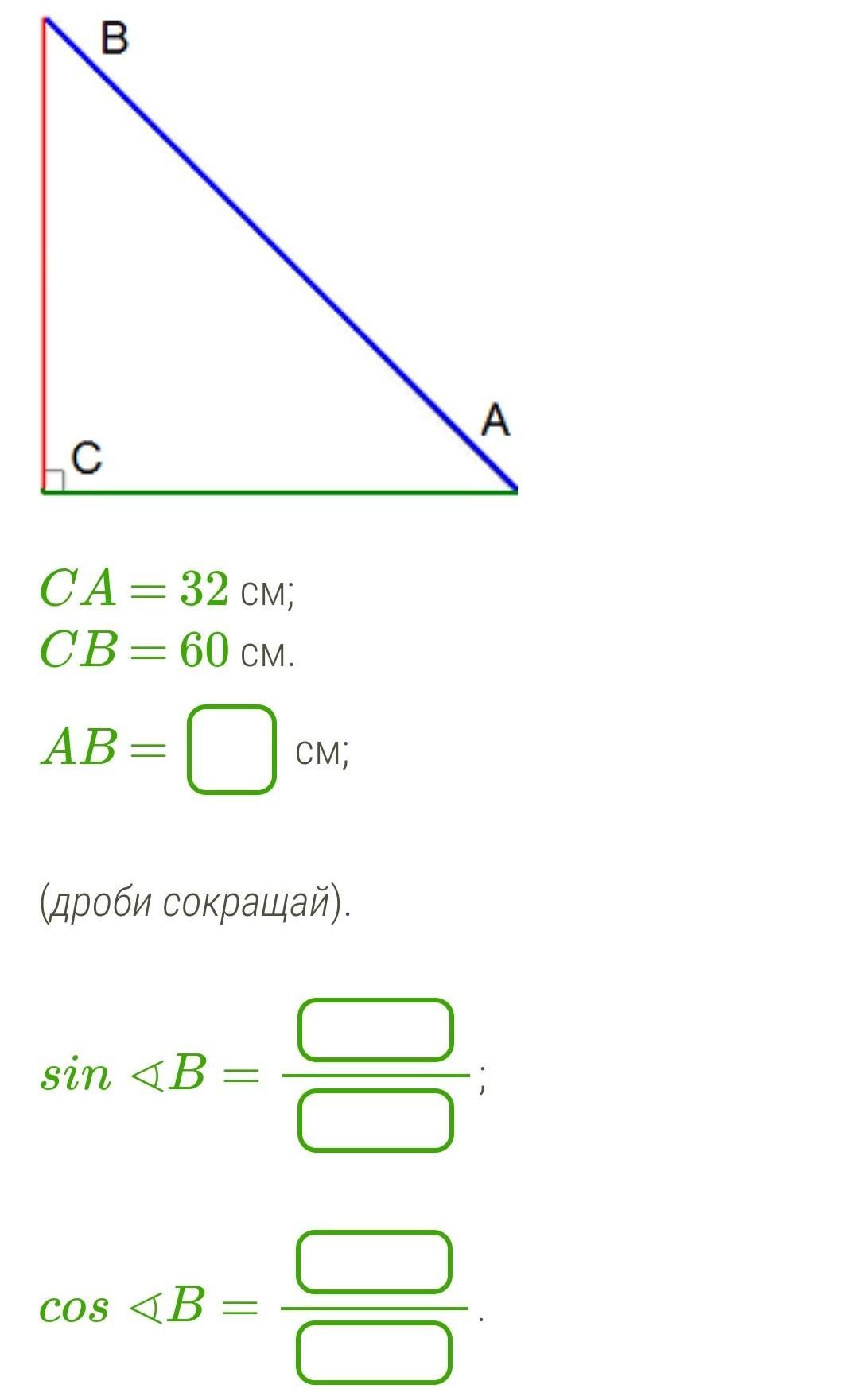 Ответ : АВ=68см, соs угла В =15/17, sin угла В =8/17