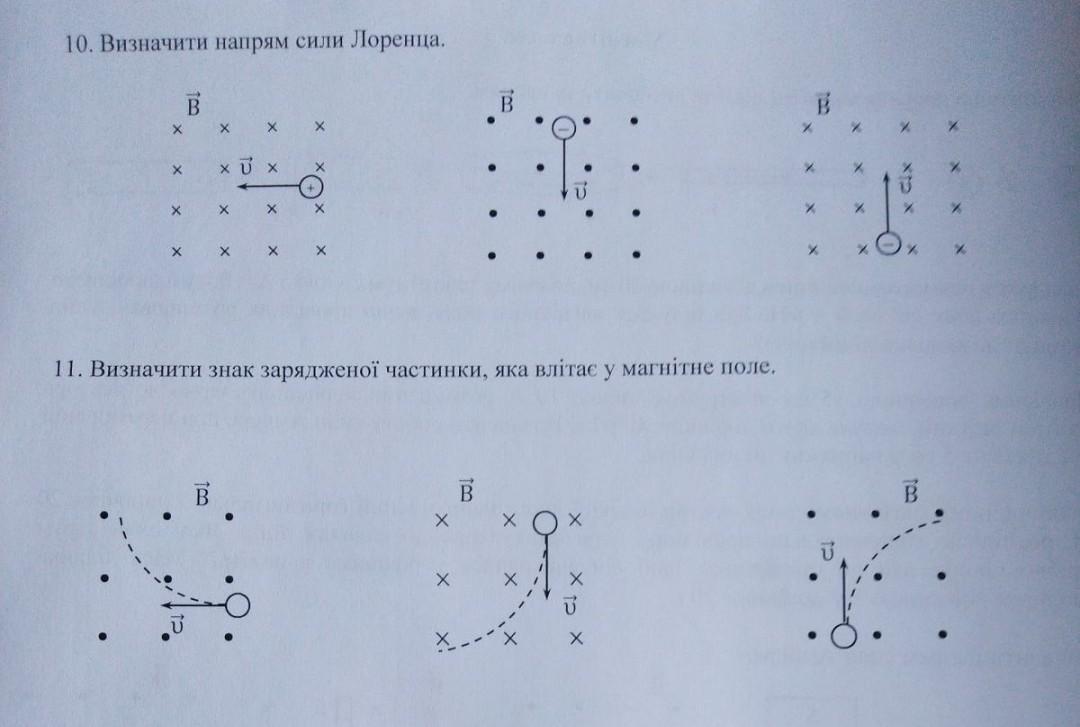 Визначити напрям сили Лоренца.
