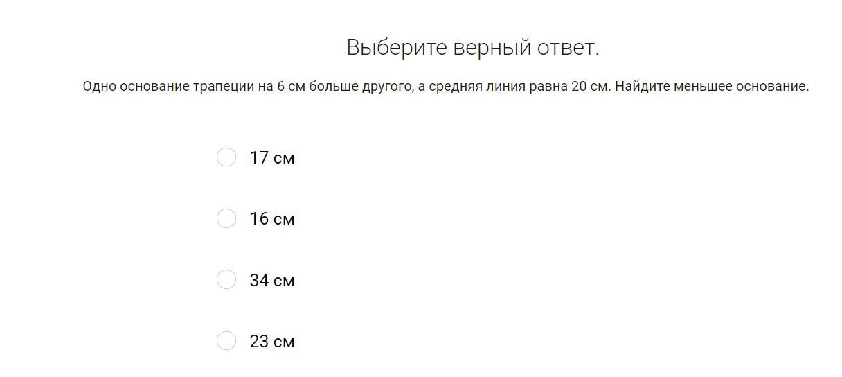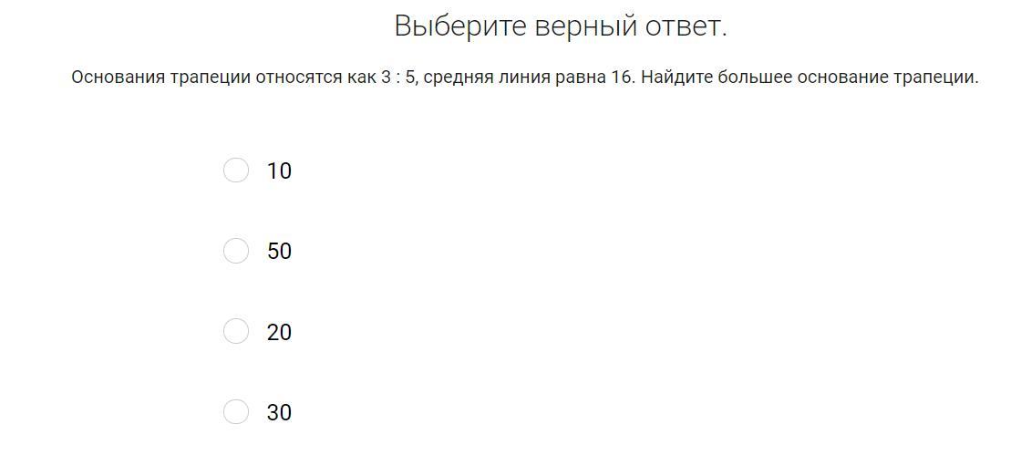 4)Пусть одна часть=х см, тогда меньшее основание 3х см, большее основание 5х см. По свойству средней линии
