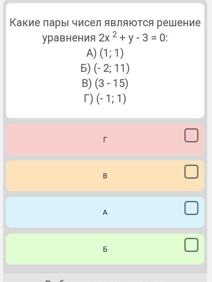 Какие пары чисел являются решение уравнения 2х 2 + у - 3 = 0: