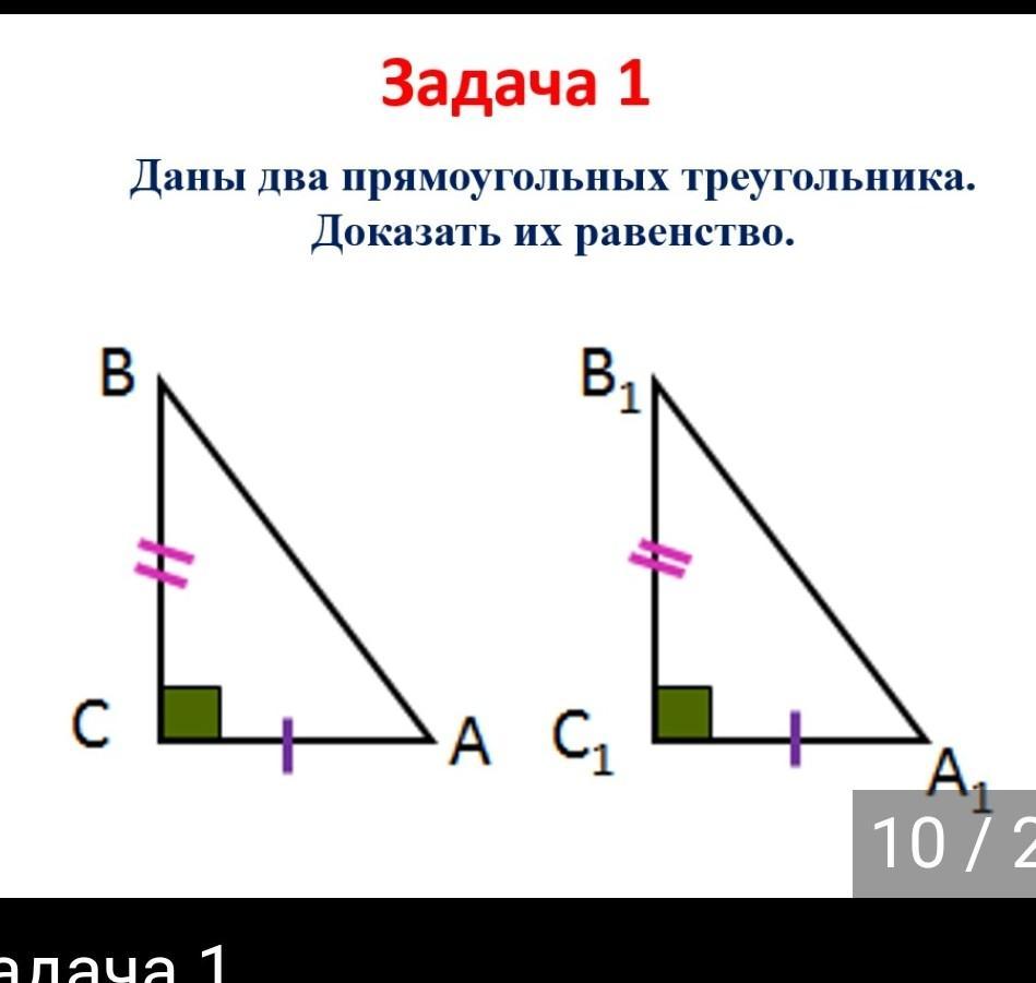 Т.к. СВ=С₁В₁ по условию, СА=С₁А₁ по условию, и треугольники прямоугольные ,то АВС=А₁В₁С₁ по двум катетам( признаки прямоугольного треугольника)