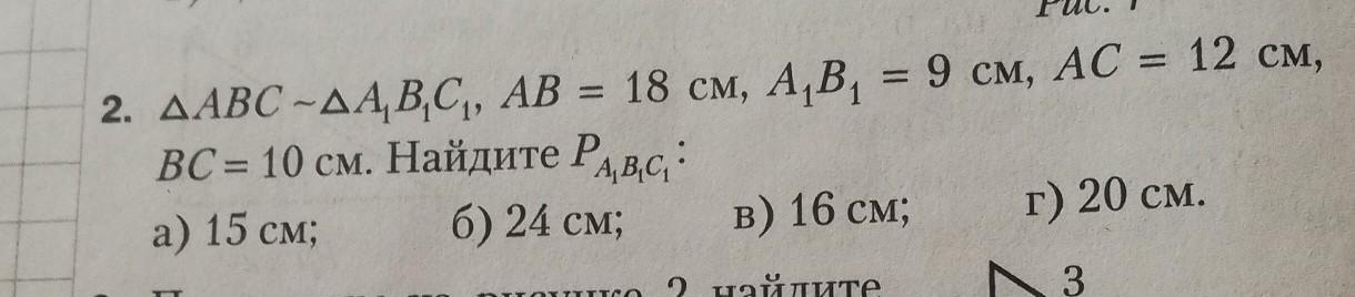 4) P (A1B1C1)= 9+6+5=20 (см)