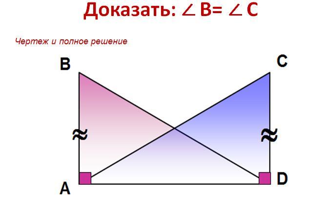 Треугольник АВD =треугольнику АСD, по двум катетам следовательно угол В= углу С
