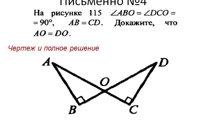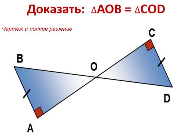 Вторая: т.к угол BOA= углу COD как вертик, а угол A= углу C (по условию), сторона CD=BA, то треугольник AOB= треугольнику COD