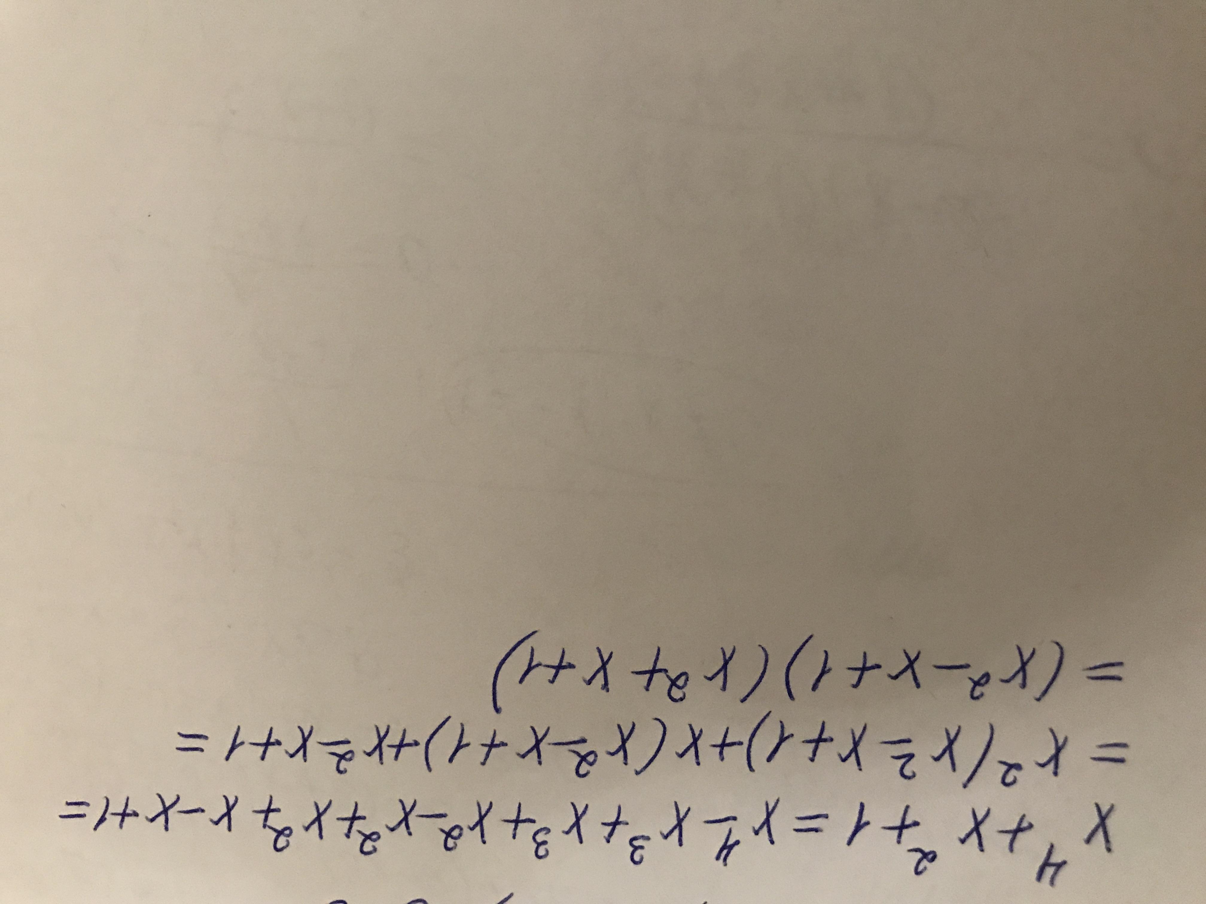 x^4+x^2+1=x^4+2x^2+1-x^2=(x²+1)²-x²=(x²+1-x)(x²+1+x)=(x²-x+1)(x²+x+1)