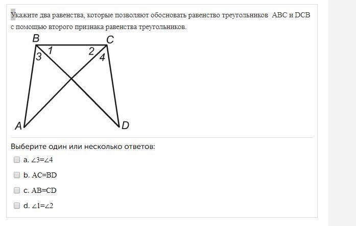нужно найти правило равенства треугольников ну вроде b мне тож так кажется ну признак равенства найди тогда поймешь