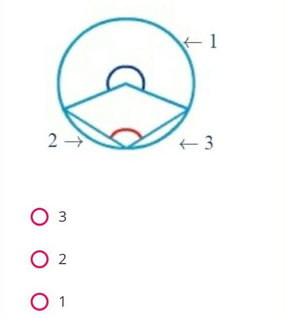 вписанный угол стягивает дуга 1, а центральный угол дуги 2 и 3.