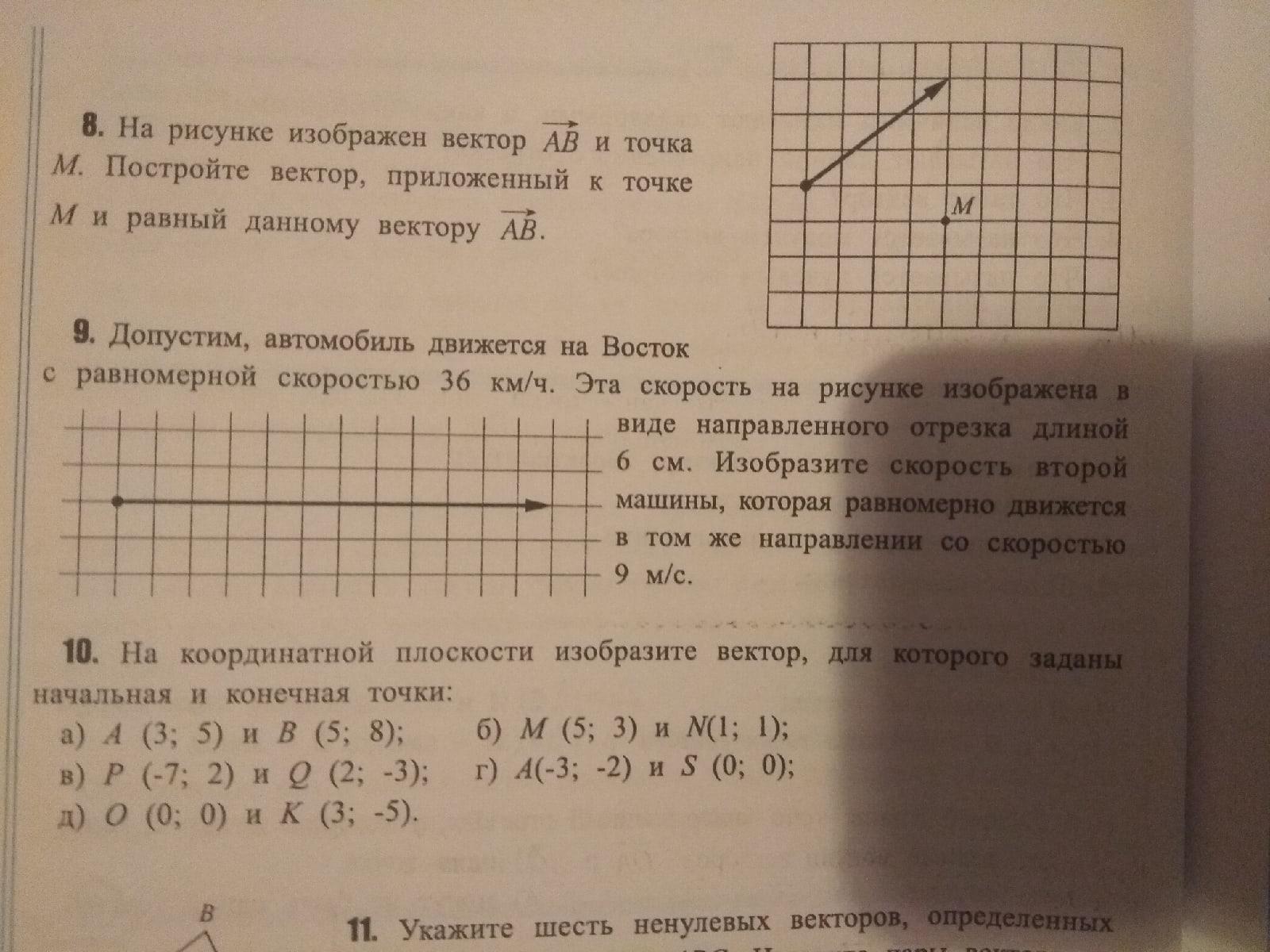 Допустим, автомобиль движется на Восток с равномерной скоростью 36 км/ч. Эта скорость на рисунке изображена в виде направленного отрезка длиной 6 см. Изобразите скорость второй машины, которая равномерно движется в том же напрвлении со скростью 9 м/с.