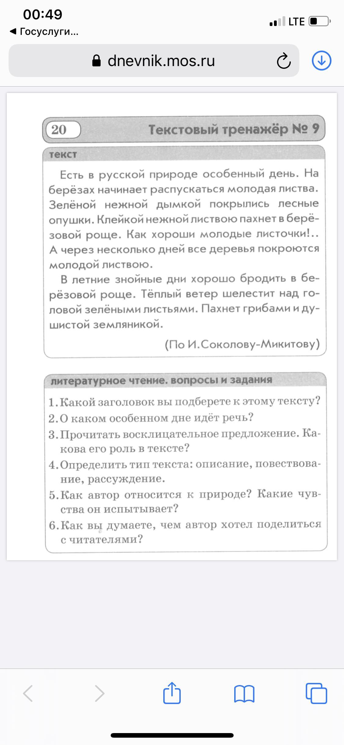 4. Описание. Автор описывает березовую рощу весной и летом.