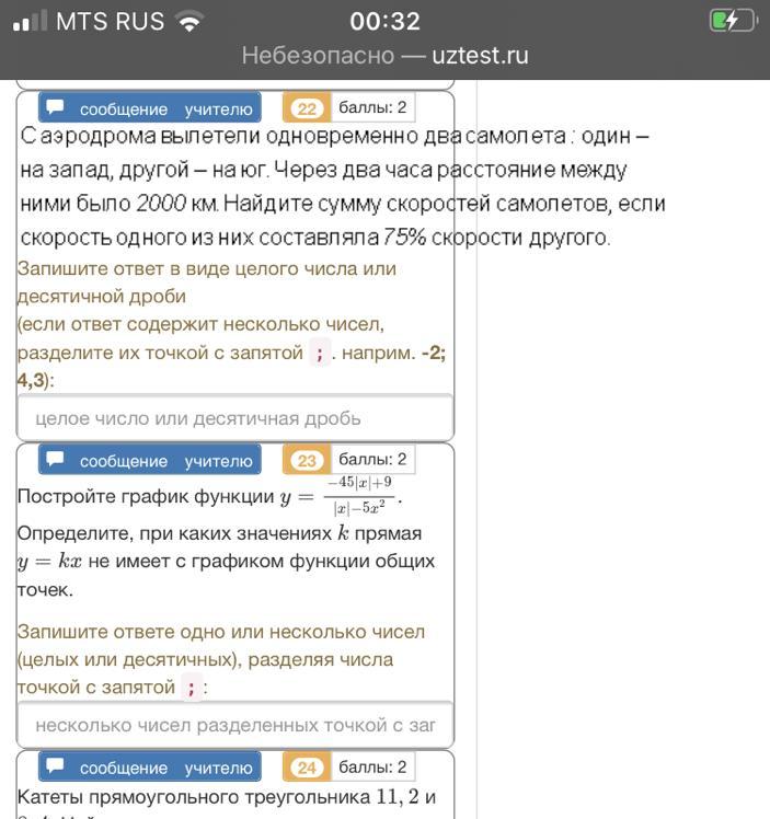 Заметим, что x - неотрицательное число, т.к выражает расстояние. Теперь найдем сумму скоростей: x+0,75x=1,75x; 1,75*800=1400 км/ч