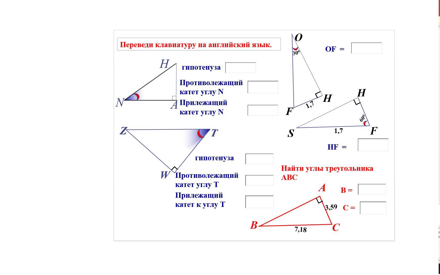 Треугольник HNA: гипотенуза HN; HA;Na или NH;