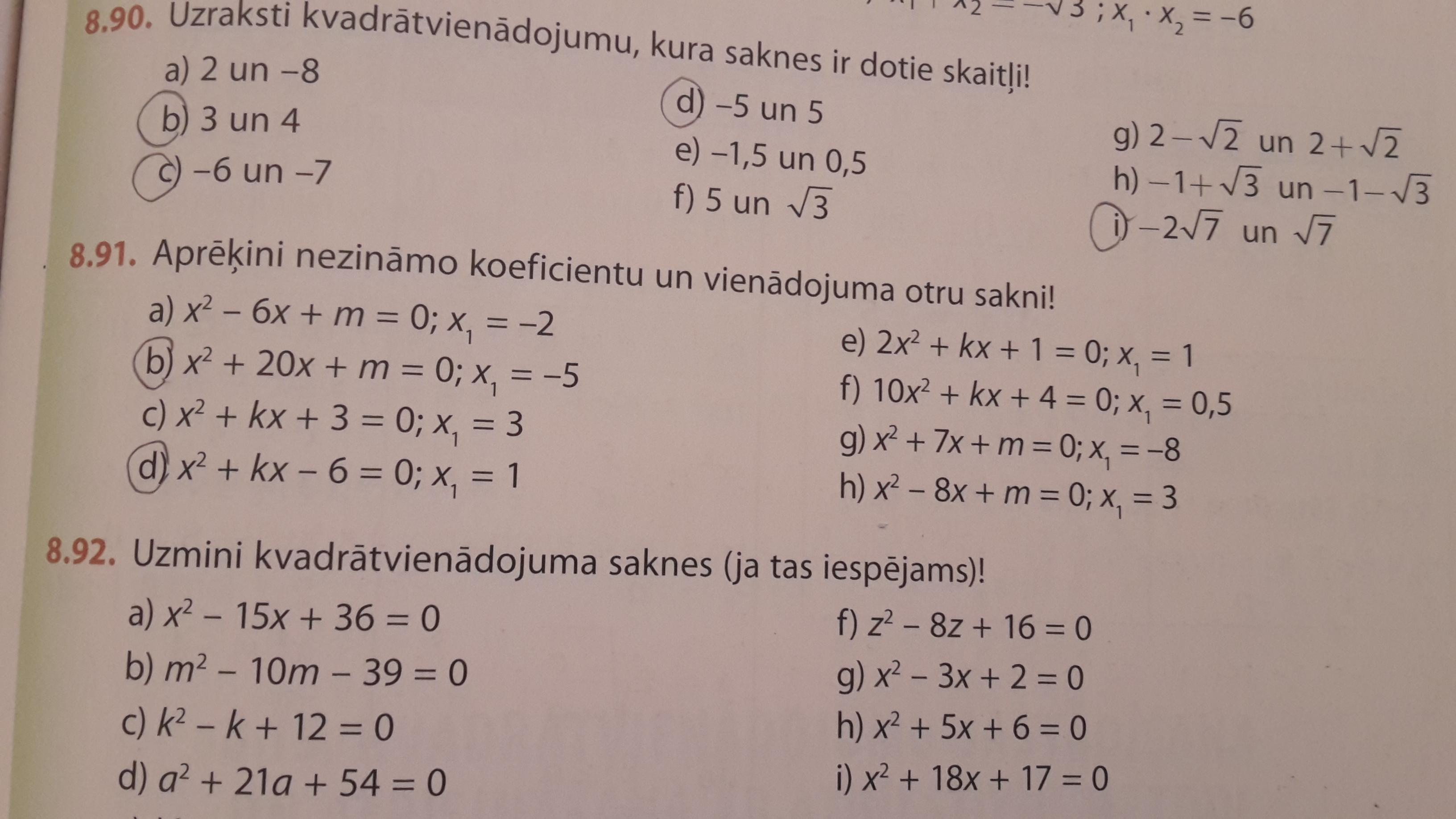 Прив. Нужна помощ по математике. Задание:Вычесли неизвестный коэфицент и второй корень уравнения Задание 8.91 делать только обведенное