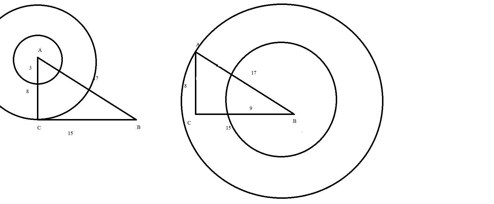 Поскольку расстояние от точки В до АС от 15 см до 17 см, то окружность с АС не имеет общих точек.
