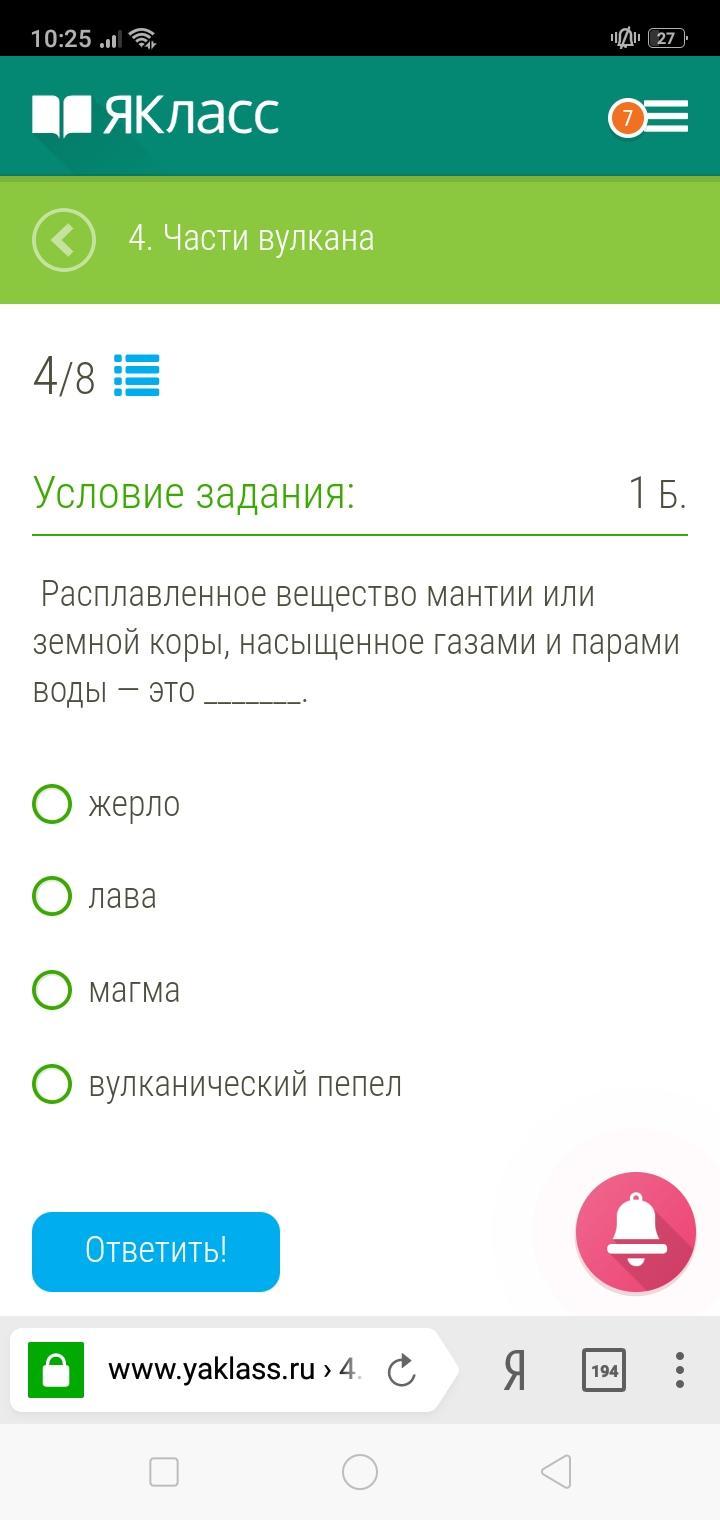 Расплавленное вещество мантии или земной коры, насыщенное газами и парами воды - это магма