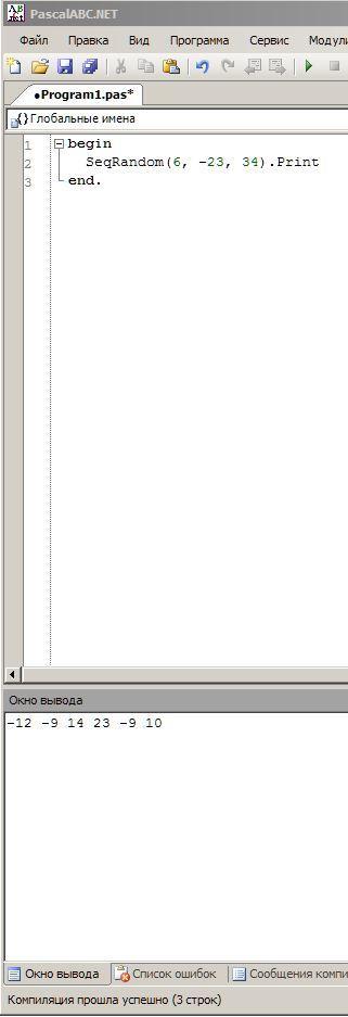 Паскаль задание. Сформировать и вывести на экран последовательность из 6 элементов, заданных датчиком случайных чисел на интервале [-23, 34]