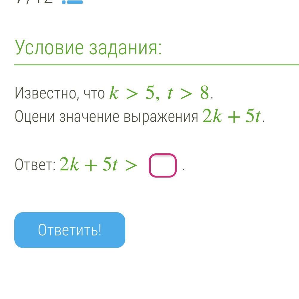 Ответ: 2k+5t>50.