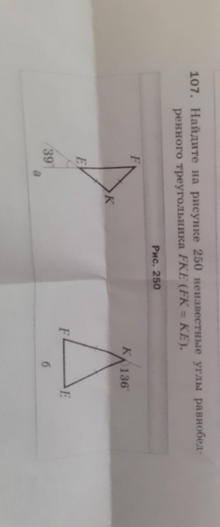 250 неизвестные углы равнобедренного треугольника FKE (FK=KE).