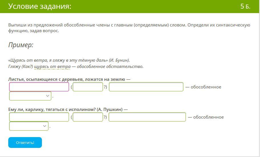 листья ( какие?) осыпающиеся с деревьев - обособленное определение