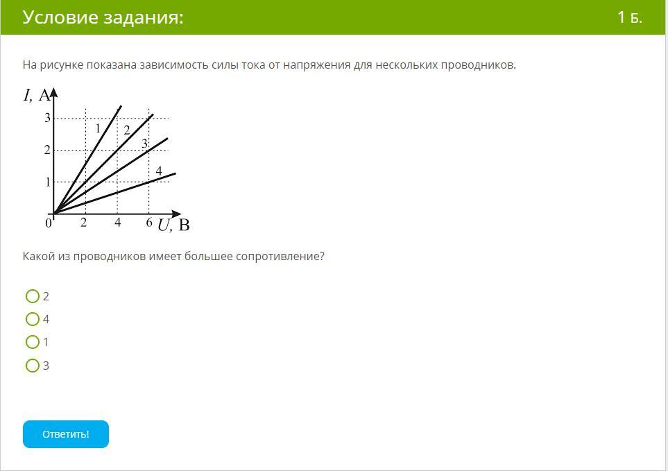 Поэтому, минимальное сопротивление проводника показано на графике 1, максимальное - на графике 4.