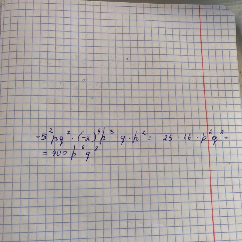 Представь одночлен -5^2pq^7*(-2)^4p^3q*p^2 в виде одночлена стандартного вида. Запиши его степень и коэффициент