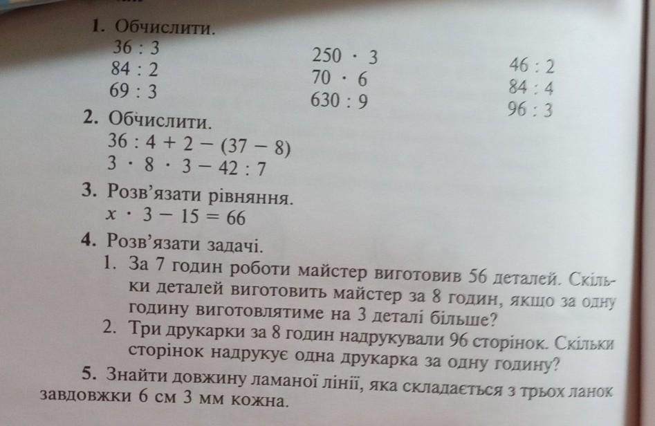1. 36:3=12, 84:2=42,69:3=23, 250×3=750, 70×6=420, 630÷9=70, 46÷2=23, 84÷4=21,96÷3=32