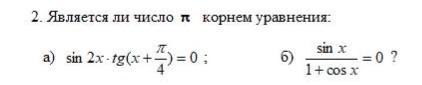 У первого уравнения число π является корнем. т.к. sin2π равен нулю.