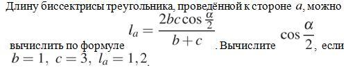 подставляем значения, 1,2=2*1*3*cosa/2 /1+3,