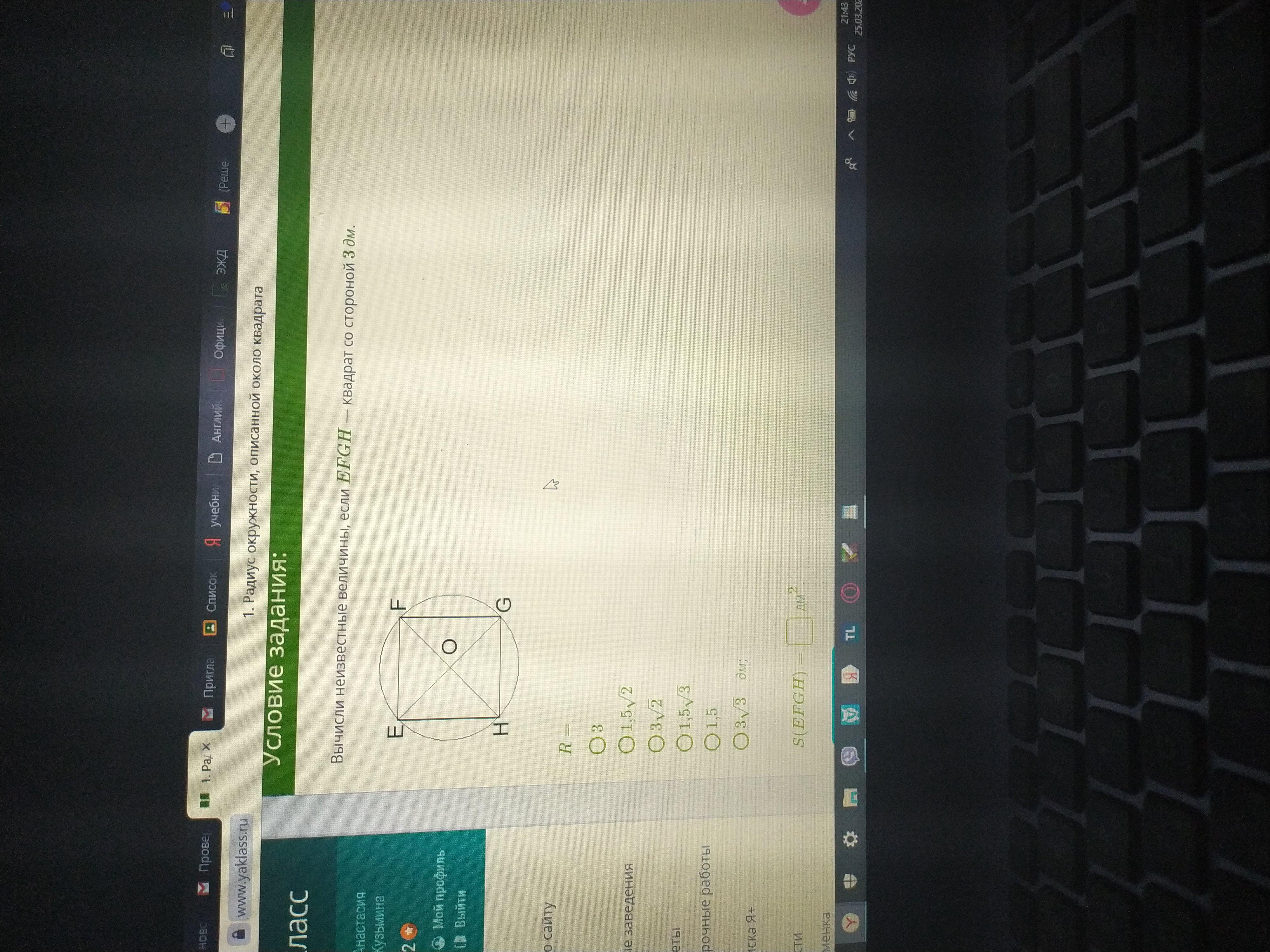 Площадь квадрата S(EFGH)=3×3=9дм²