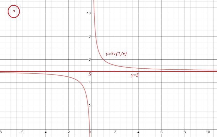 a) Значения функции f(x) при х → ∞ стремятся к числу 5. Асимптотой функции f(x) будет прямая у=5 . Значит график функции приближается к прямой у=5, не пересекая её.