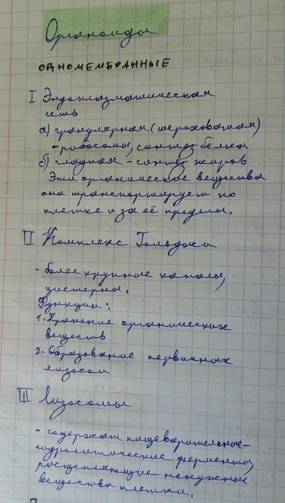 1. Комплекс Гольджи - хранение органических веществ и образование первичных лизосом