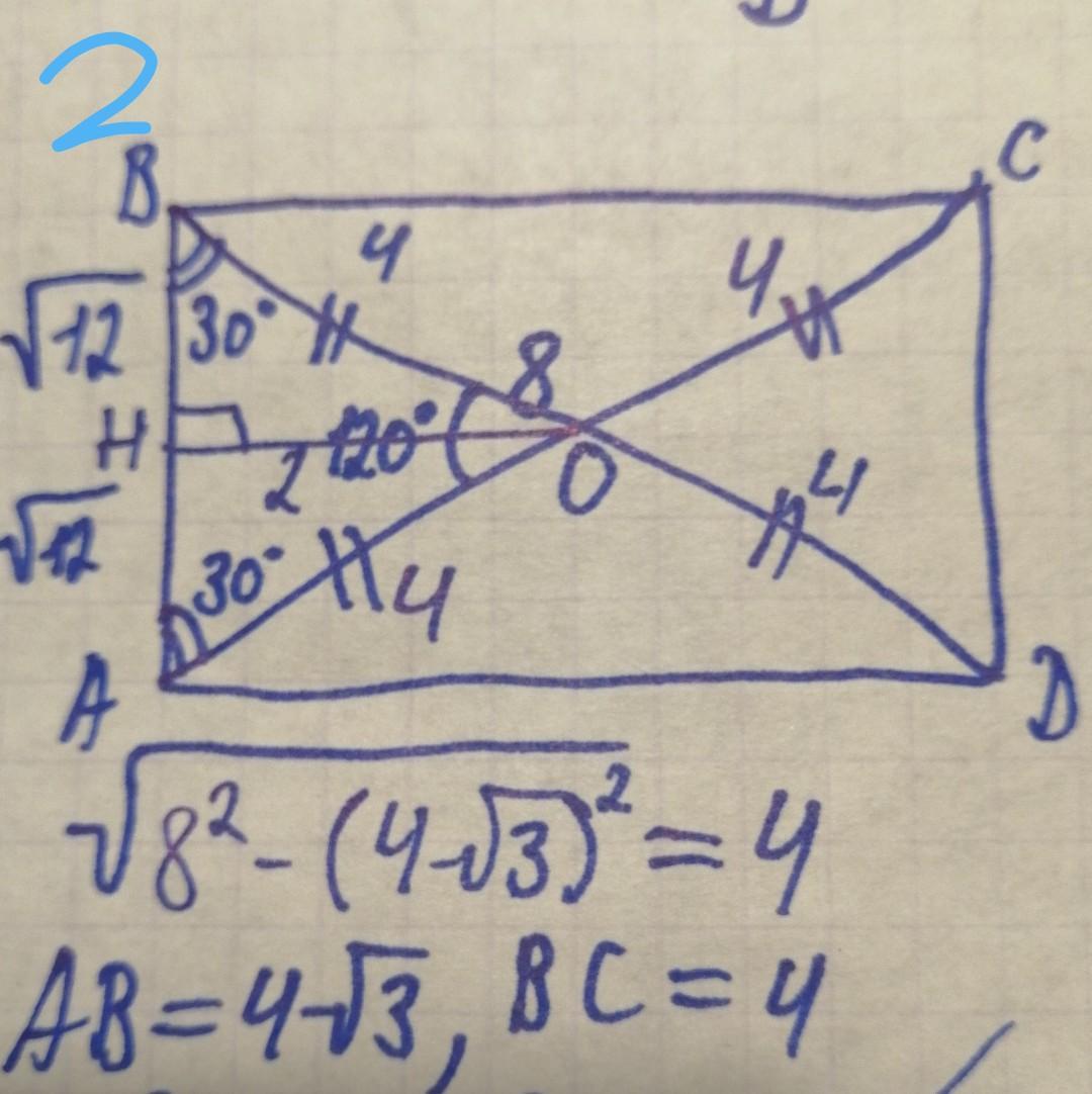Ответ: 2 стороны по 4 корня из 3, 2 стороны по 4